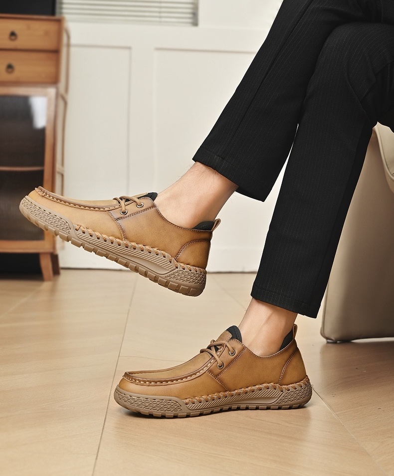⏰Last Day! 50% OFF 🔥VECTOSOLE®Men's Lace-Up Cowhide Loafers – Handmade Leather, Lightweight Low-Top